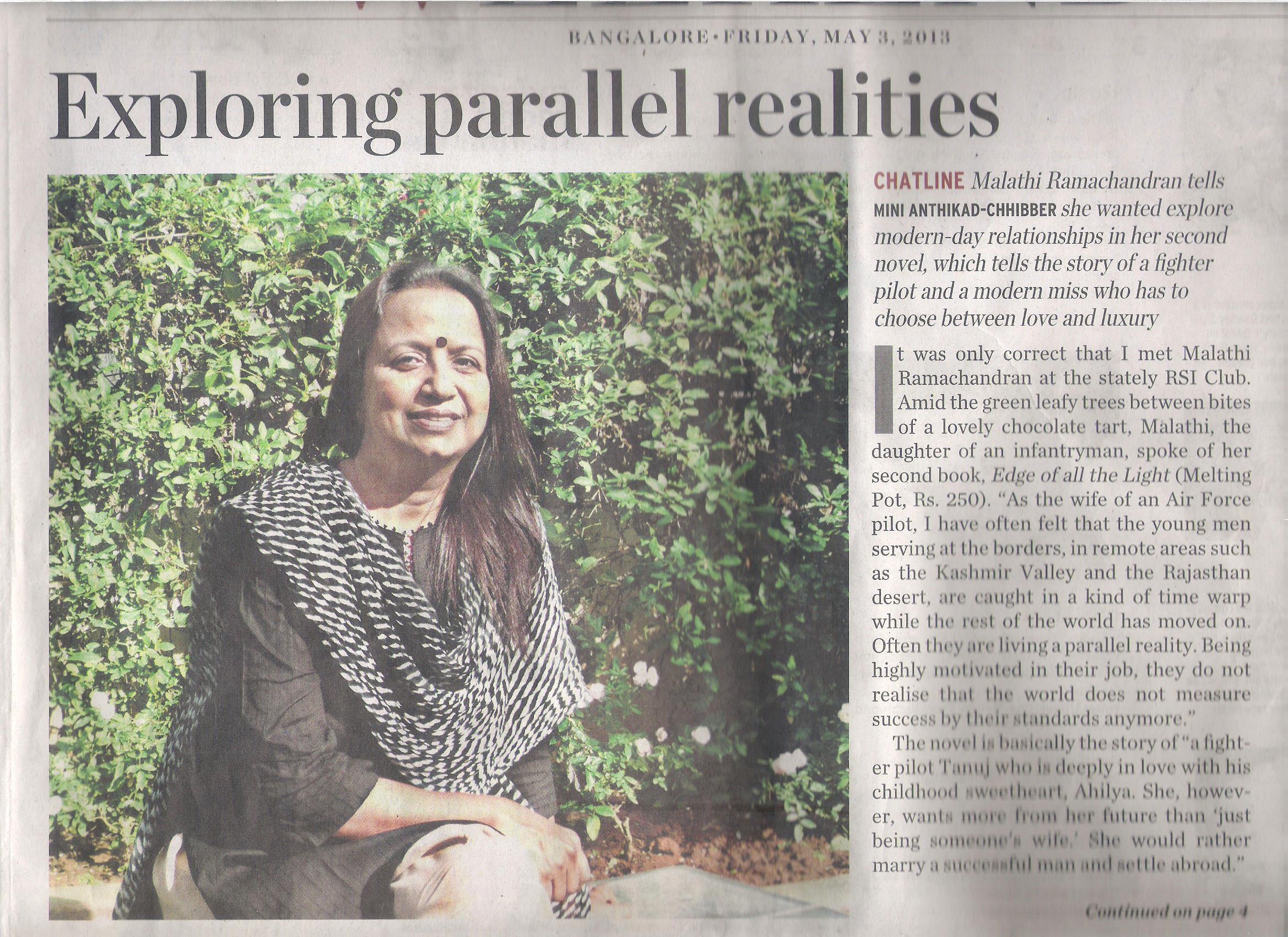 An expansive interview in Hindu Metroplus on the writing of my second novel Edge of all the Light.